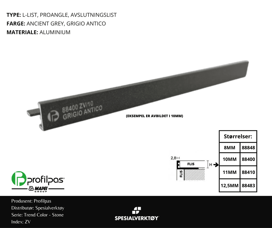 - AVSLUTNINGSLIST ZV/10 STONE ALUMINIUM ANCIENT GREY 10MMX270CM, PROFILPAS