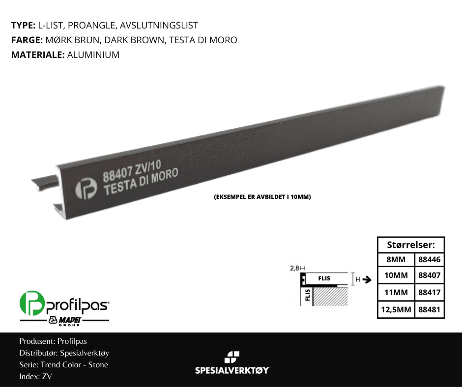 - AVSLUTNINGSLIST ZV/10 STONE ALUMINIUM DARK BROWN 10MMX270CM, PROFILPAS