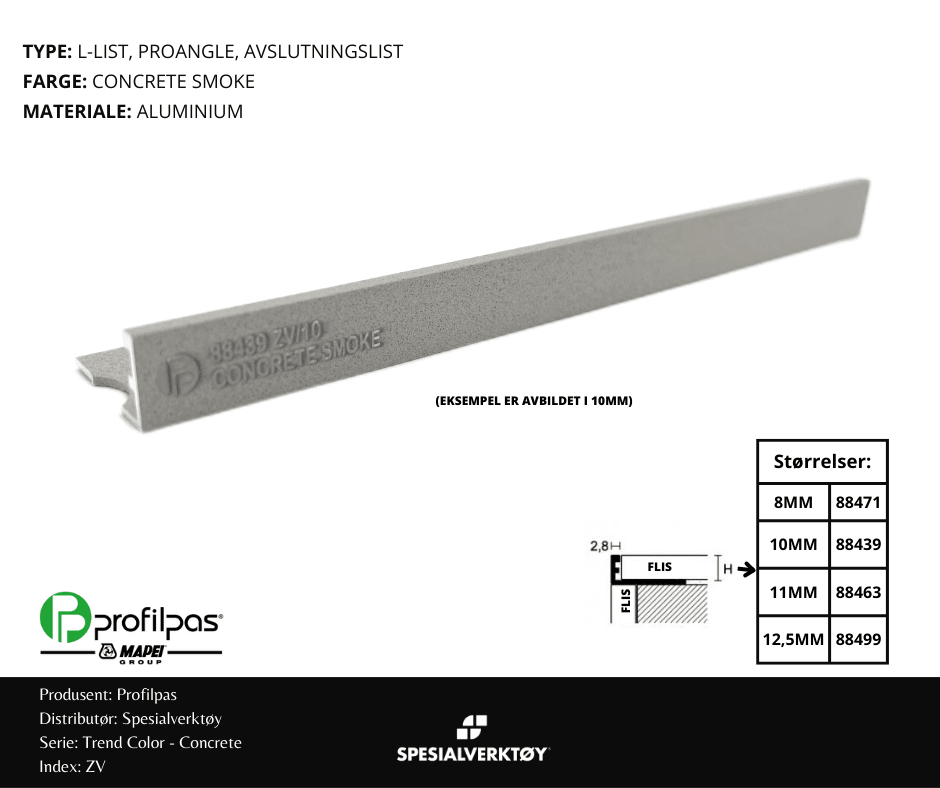 - AVSLUTNINGSLIST ZV/11 CONCRETE ALUMINIUM SMOKE 11MMX270CM, PROFILPAS