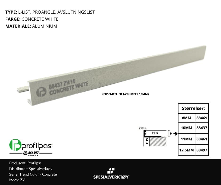 - AVSLUTNINGSLIST ZV/11 CONCRETE ALUMINIUM WHITE 11MMX270CM, PROFILPAS