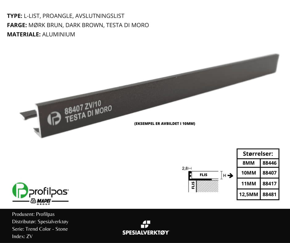 - AVSLUTNINGSLIST ZV/11 STONE ALUMINUM DARK BROWN 11MMX270CM, PROFILPAS