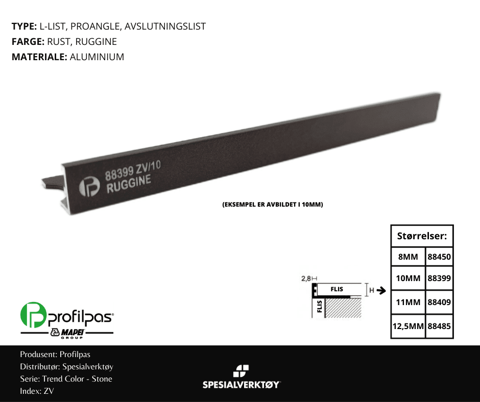 - AVSLUTNINGSLIST ZV/8 ALUMINIUM RUST 8MMX270CM, PROFILPAS