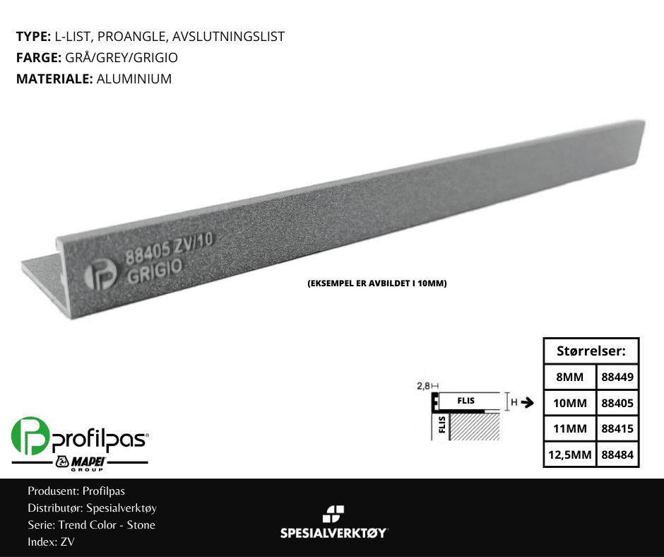 - AVSLUTNINGSLIST ZV/8 STONE ALUMINIUM GREY 8MMX270CM, PROFILPAS