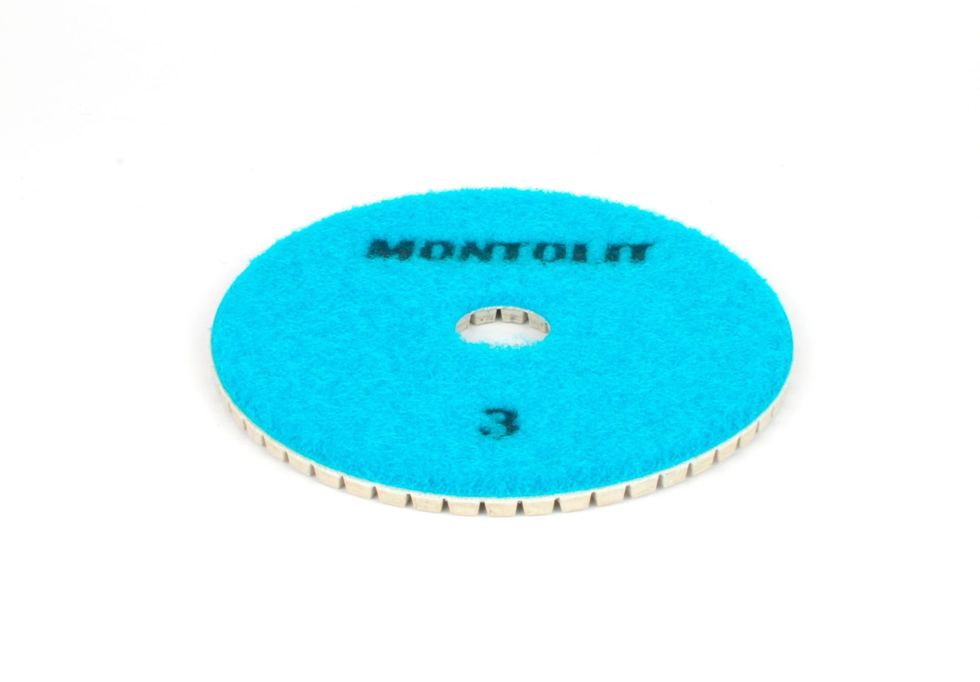 Diamantpad med borrelåskobling for tørr- eller våtsliping og polering av porselensfliser og naturstein.