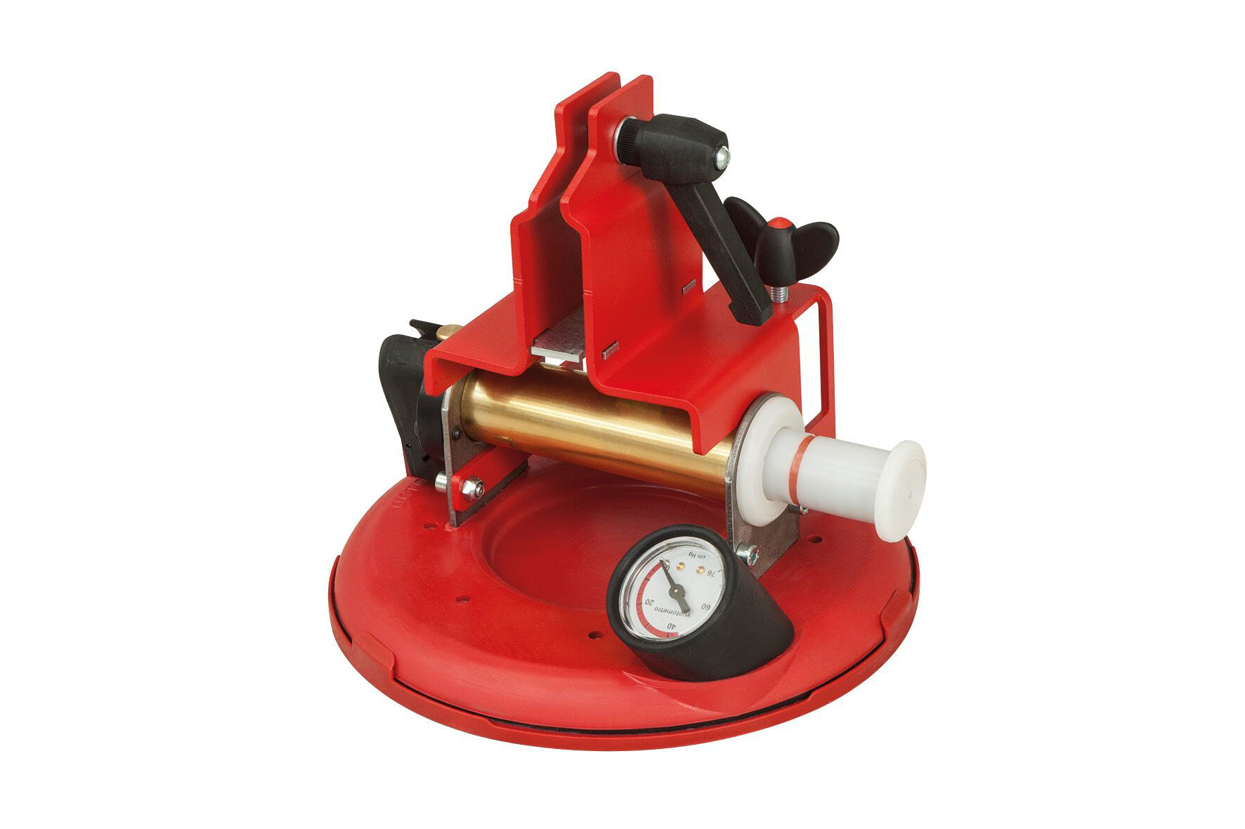 Stor sugekopp (Ø 20cm – 8"), utstyrt med en "vakuum" sikkerhetsmåler som umiddelbart vil vise tap av vedheft med flisen.