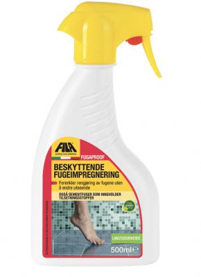 Fila Fugaproof er en vannbasert impregnering for å beskytte sementbasert fugemasse på gulv og vegg mot forurensing og misfarging.