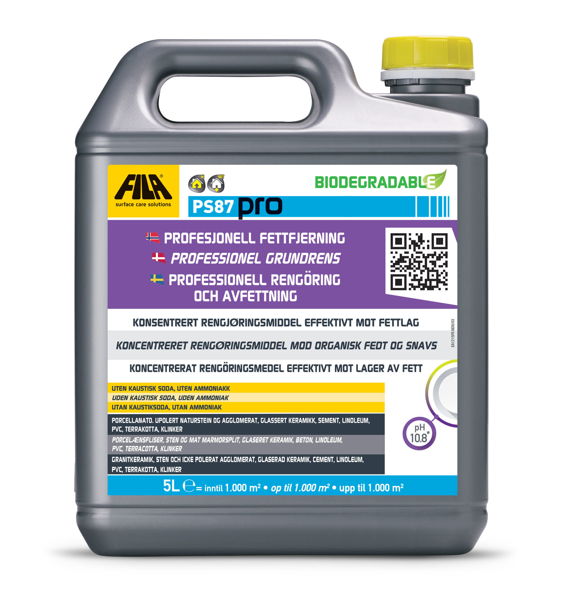 I fortynnet form rengjør og fjerner det fett fra veldig skitne gulv i porcellanato, keramikk, naturstein, terrakotta, klinker og sement.