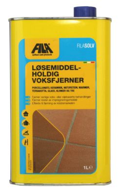 FilasolvVoksfjerner for løsemiddelbasert voksBruksområdeVoksfjerner for grundig fjerning av løsemiddelbasert voks fra tre- og terrakottagulv.Filasolv kan derfor benyttes til vedlikehold av tidligere behandlede gulv som er så gamle og flekkete at dyprens er nødvendig. Etterfølges av gjenoppbygging av en beskyttende voksoverflate. Også effektiv som avfettingsmiddel på overflater som har vært behandlet med linolje. Filasolv er også effektiv som overflatefinish om gulvet har striper og flekker fra overdreven eller feil påføring av hardvoks.Benyttes også ved fjerning av Fila Mp 90-rester fra porcellanato, marmor eller granittgulv og av Filaparquet fra treflater.BruksmåteFortynning: Skal ikke fortynnes. Klar til bruk.Påføring: Hell Filasolv på en klut til kluten er gjennomvåt. Ved påføring må kluten snus og skiftes ut ofte, slik at den fjernede voksen ikke blir smurt utover gulvet igjen. I vanskelige tilfeller, for eksempel ved mange lag gammel voks, gjenstridige flekker eller avleiringer, la Filasolv virke noen få minutter før gulvet skrubbes med børste.OBS! Etter rensing med Filasolv er det nok å påføre et strøk Cera in Pasta per Cotto etterfulgt av Cottowax for å gjenopprette gulvets overflate.Ved fjerning av Fila MP/90-rester, hell Filasolv på en klut og tørk over den behandlede flaten ved å gni til den opprinnelig glansen er gjenopprettet. Teknisk beskrivelseUtseende: Transparent væskeLukt: Svak lukt av løsemiddelTetthet: 0,78 kg/literFlammepunkt: 40 °CForbrukVed bruk som voksfjerner cirka 20 liter per 100 m2. Forbruket avhenger av gulvets tilstand og jobben som skal utføres. Pakningsstørrelser5-liters kanner i kartonger á 4 stk.Literskanner i kartonger á 12 stk.InnholdBalansert blanding av organiske løsemidler: Avaromatiserte hydrokarboner og glykoleter, ikke vannløselig.ForsiktighetsreglerFilasolv er brannfarlig. Det anbefales ikke bruk av polermaskin eller støvsuger i forbindelse med arbeidet.MerkingSymbol: St. Andreaskorset (N) HELSESKADELIGAdvarsel: Brannfarlig. Helseskadelig; kan forårsake skade på lungene ved svelging.Sikkerhetsadvarsel: Må ikke inhaleres. Unngå å få produktet på huden. Ikke fremkall brekninger ved svelging, men kontakt lege øyeblikkelig.Inneholder: Avaromatisert mineralterpentin. Oppbevares utilgjengelig for barn!HELSESKADELIGBruksområdeTERRAKOTTA, PORCELLANATO og TRE