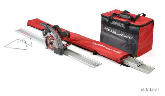 Moto Flash Line er utstyrt med skinner som fester seg direkte til materialet som skal bearbeides takket være et patentert system uten sugekopper.