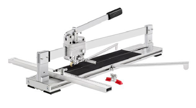 Flisutteren er konstruert i aluminium og stål og utstyrt med anti-skli gummimatte for å unngå at flisene sklir under kutting. Støttearm er inkludert for store fliser. Standard kuttehjul TIN 22mm medfølger.