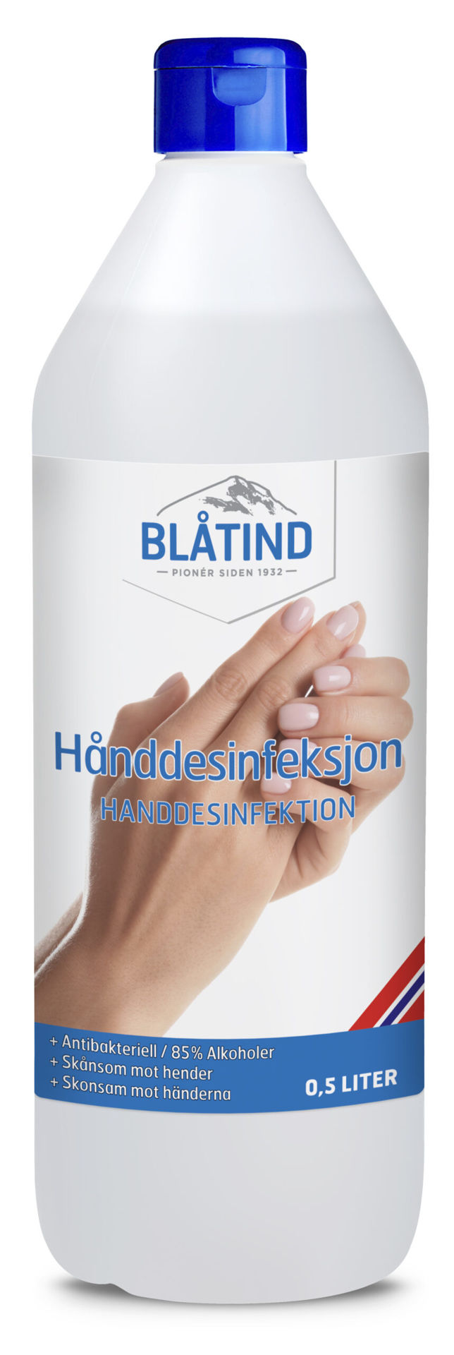 Blåtind Hånddesinfeksjon er en effektiv antibakteriell gel uten parfyme for desinfeksjon av hender. Blåtind Hånddesinfeksjon er Etanolbasert og inneholder i tillegg ingredienser som gjør at huden ikke tørker ut så lett. Konsistensen bidrar til en enkel og behagelig fordeling på huden.