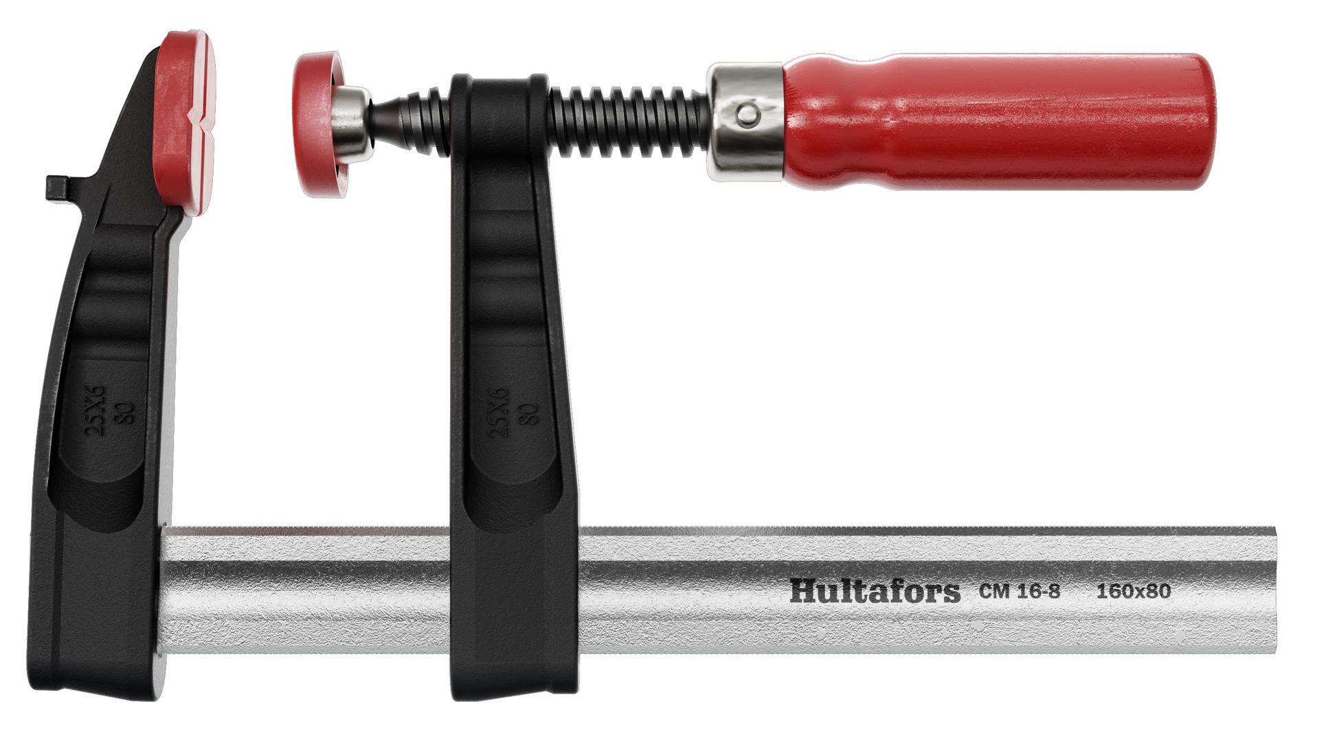 En sterk klemme med kjever av formstøpt jern og håndtak av tre.