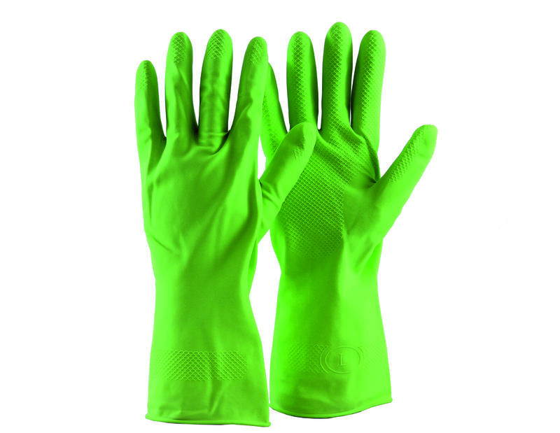 Gummihanske med flosset innside og innsatt med Aloe Vera for å fukte og godgjøre hånden. En hanske for mange gjøremål som renhold, matproduksjon, foredlingsindustri m.m. Bunter med 12 par. Kartonger med 144 par.