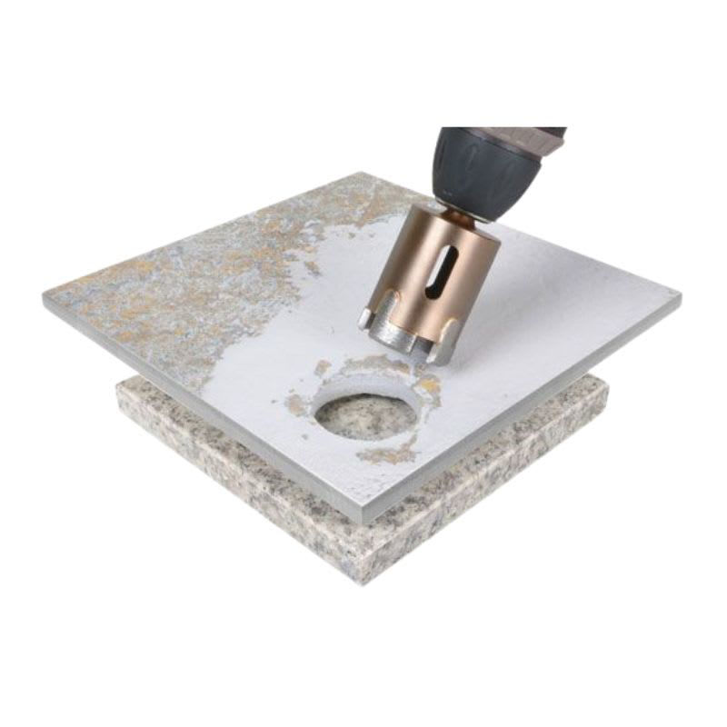 Montolit Killer Gres FT diamantkjerneborkrone for roterende bor med 10 mm sekskantet montering på DRILL. Tilgjengelig i forskjellige diametre fra 6mm opp til 120mm. Killer gres er en profesjonell kjernebit som er ideell til harde materialer som keramikk og porselen , klinker og til og med granitt.