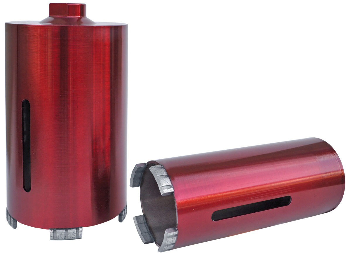 Kjernebor med M16-innfestning som benyttes på drill til tørr og våtkapping av betong, leca ol. Ved bruk av kjøling forlenges levetiden.