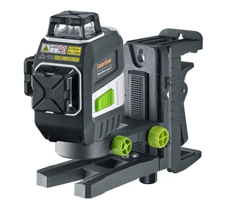 Denne tredimensjonale, svært synlige laseren projiserer en horisontal og to vertikale laserlinjer for presis oppmåling.