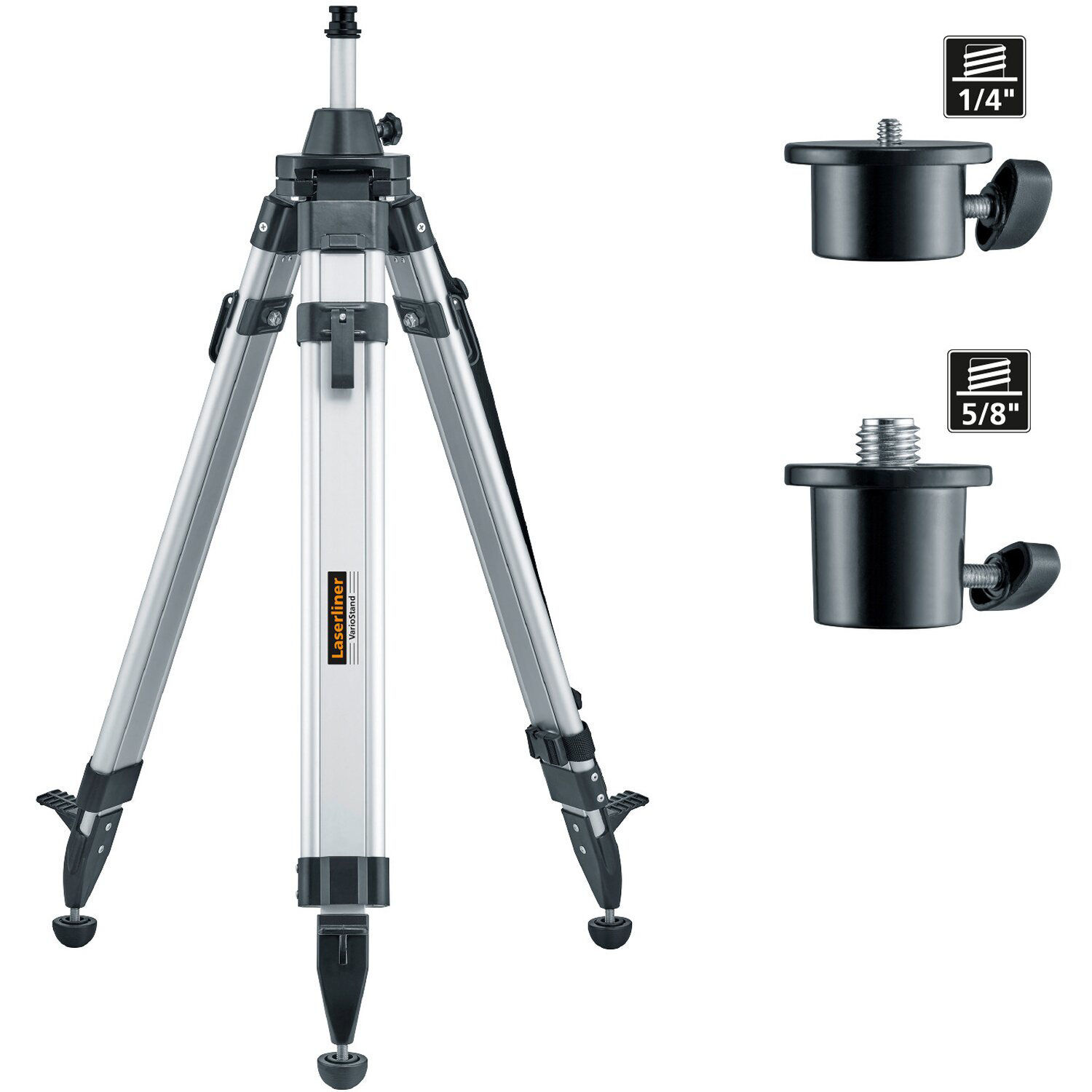 Nøyaktig og pålitelig ved bruk med lasere Enkel tilpasning til underlaget takket være kombinerte gummi- og stålspisser. Høydejustering med sveiv og teleskopiske stativben. Med adapter for montering av enheter med 1/4" og 5/8" gjenger.