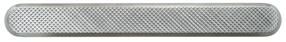 Overflate med kryssende grove riller.
