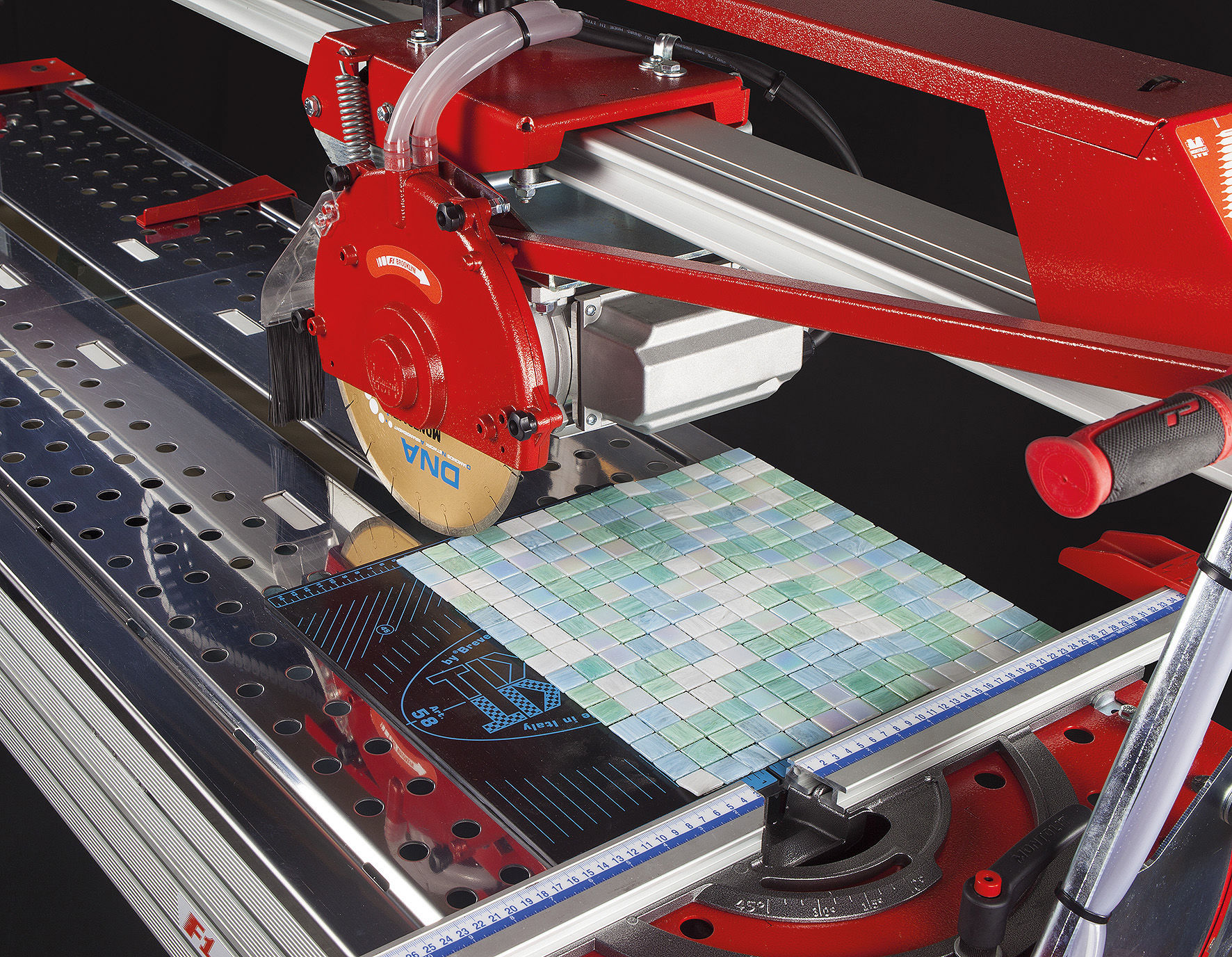 Mosaikkmatte som forenkler kutting av mosaikkfliser med vannsag. Tilpasset alle vannsager i serien F1 Brooklyn fra Montolit.