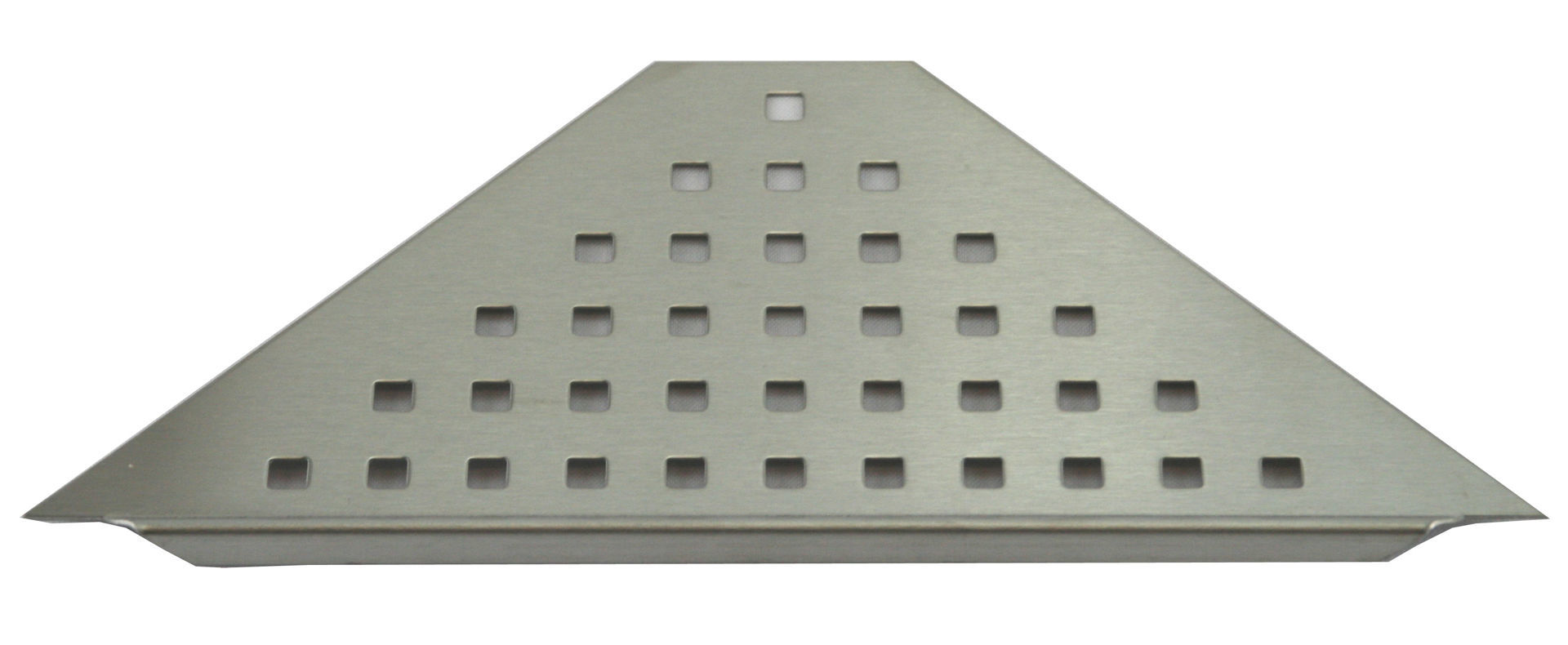 Hyllen er tilpasset hjørnet i dusjen og festes i selve fugen mellom flisene, uten å punktere membranen.