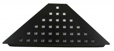 Hyllen er tilpasset hjørnet i dusjen og festes i selve fugen mellom flisene, uten å punktere membranen.