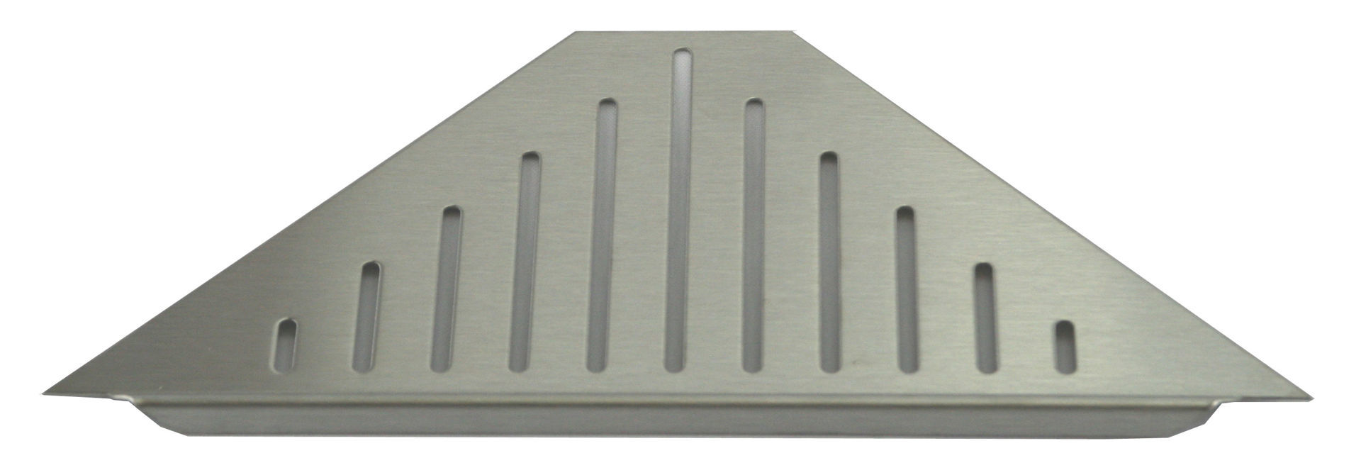 Hyllen er tilpasset hjørnet i dusjen og festes i selve fugen mellom flisene, uten å punktere membranen.