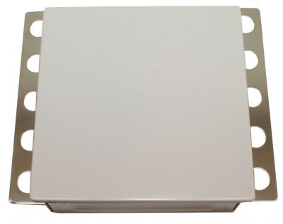 Inspeksjonsluke i rustfritt kromstål AISI 430, godstykkelse 1mm. Hvit lakkert front som holdes på plass i rammen av 2 justerbare magneter.