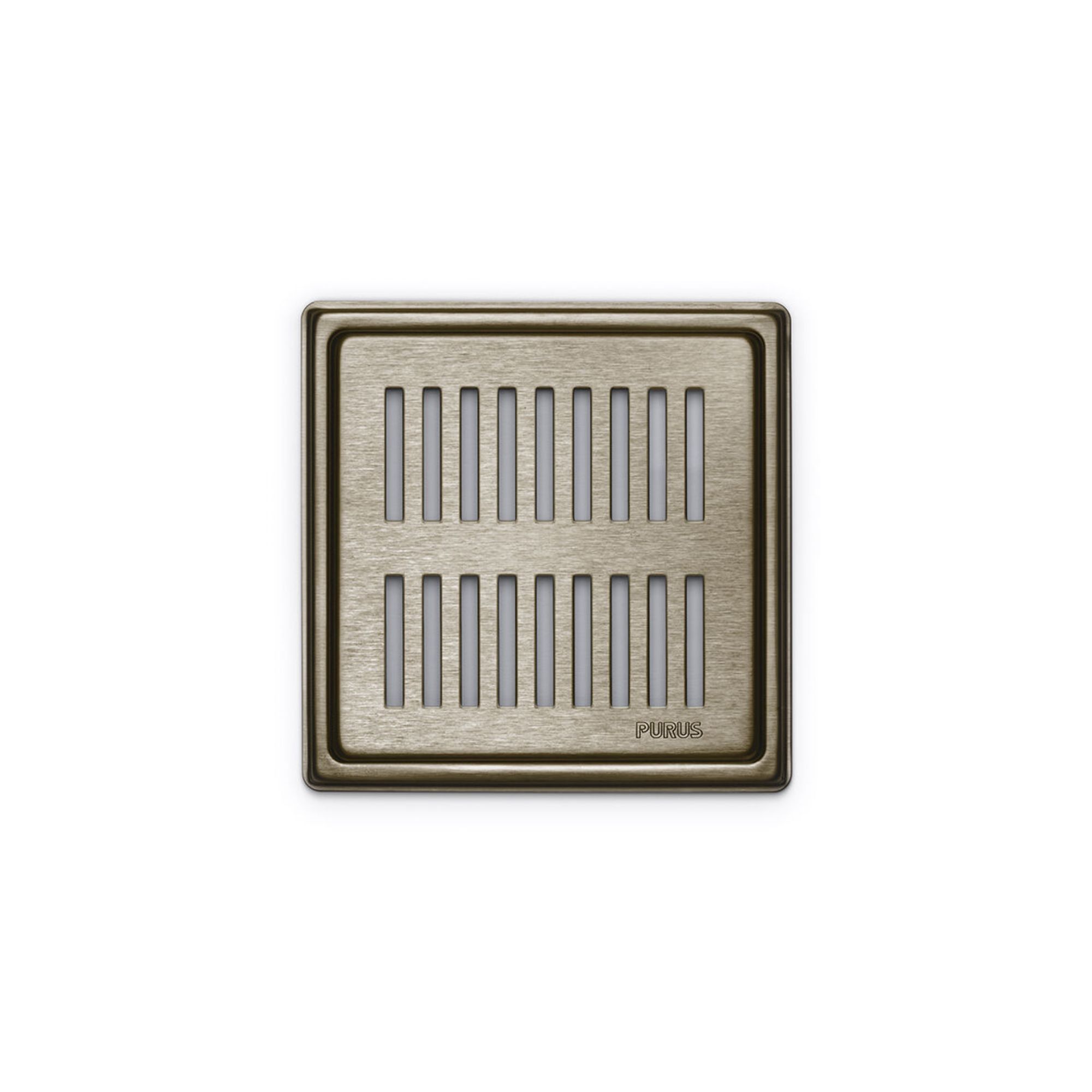 Slukrist Rib bronse er en flisramme med firkantet slukrist i høykvalitet PVD belagt rustfritt stål.
