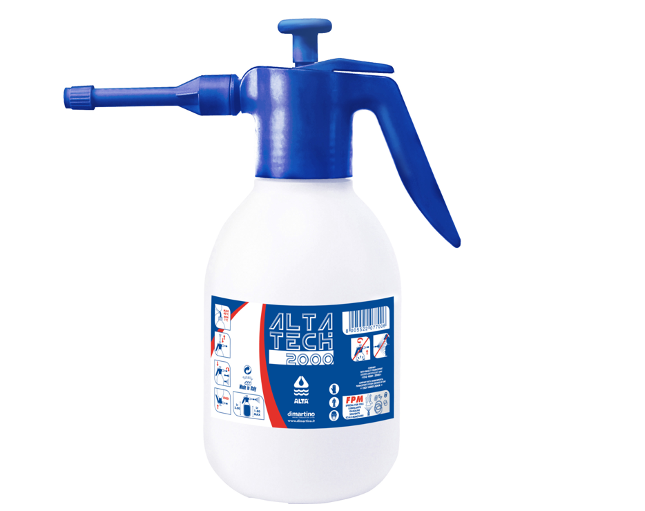 Sprøytekanne blå 2l Alta Tech for løsemidler kan benyttes til de fleste væsketyper, herunder både løsemidler og vannbaserte væsker.