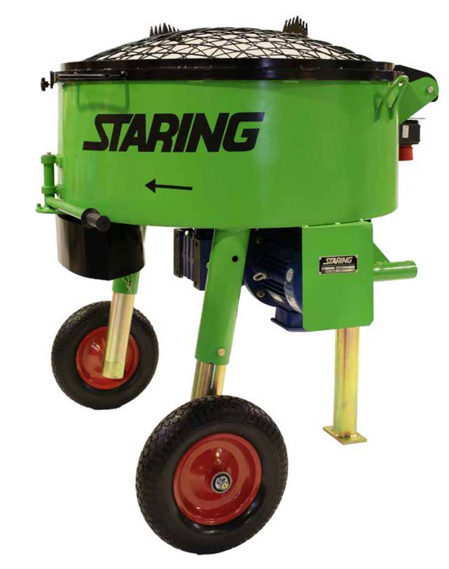 Blanderen er en allsidig mikser, kan brukes til mange produkter. Blandingshodets spesielle design sikrer en absolutt effektiv blanding av materialene. Det effektive blandehodet kan monteres med skovler av stål eller gummi, og kan løftes ut av blandekaret uten bruk av verktøy. Dette gjør rengjøring og justering av blandearmene problemfritt. Blanderen er utstyrt med 2 luftfylte gummihjul. Videre leveres blanderen med trekkstang og kan om nødvendig utstyres med (kulekobling) tilhengerfeste.