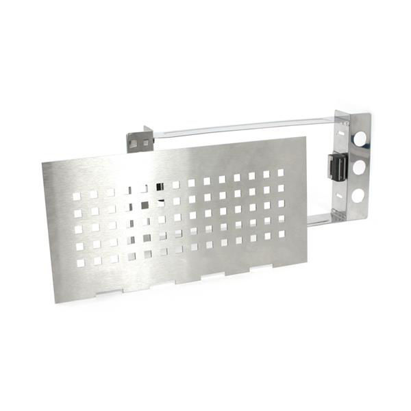 Inspeksjonsluke i børstet rustfritt stål AISI 304 med uthugg for drenering. Materialtykkelse: 1 mm. Består av ramme, rist og magnetiske fester. Beslagene er justerbare 0 - 22 mm for å passe til ulike platetykkelser. Installasjonsdimensjoner: 275 x 150 mm (42 mm dyp)