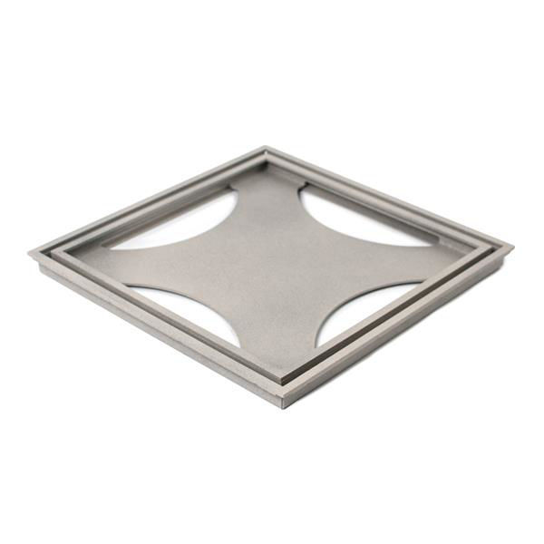 Stilig slukrist med ramme for montering av fliser. Laget i pulverlakkert rustfritt stål AISI 304 med Stone-finish i fargen granitt.Materialtykkelse: 0,8 mm.