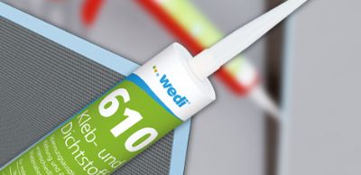 Produktegenskaper: Wedi 610 er vannbestandig og vulkaniseres med luftfuktighet til et elastisk lim. Dette har utmerket vær- og kjemikaliebestandighet. wedi 610 er løsemiddel-, silikon- og PCP-fritt og krymper lite. Lim og tetningsmiddel er forenlig med overflatebehandling i samsvar med DIN 52452, del 4.
