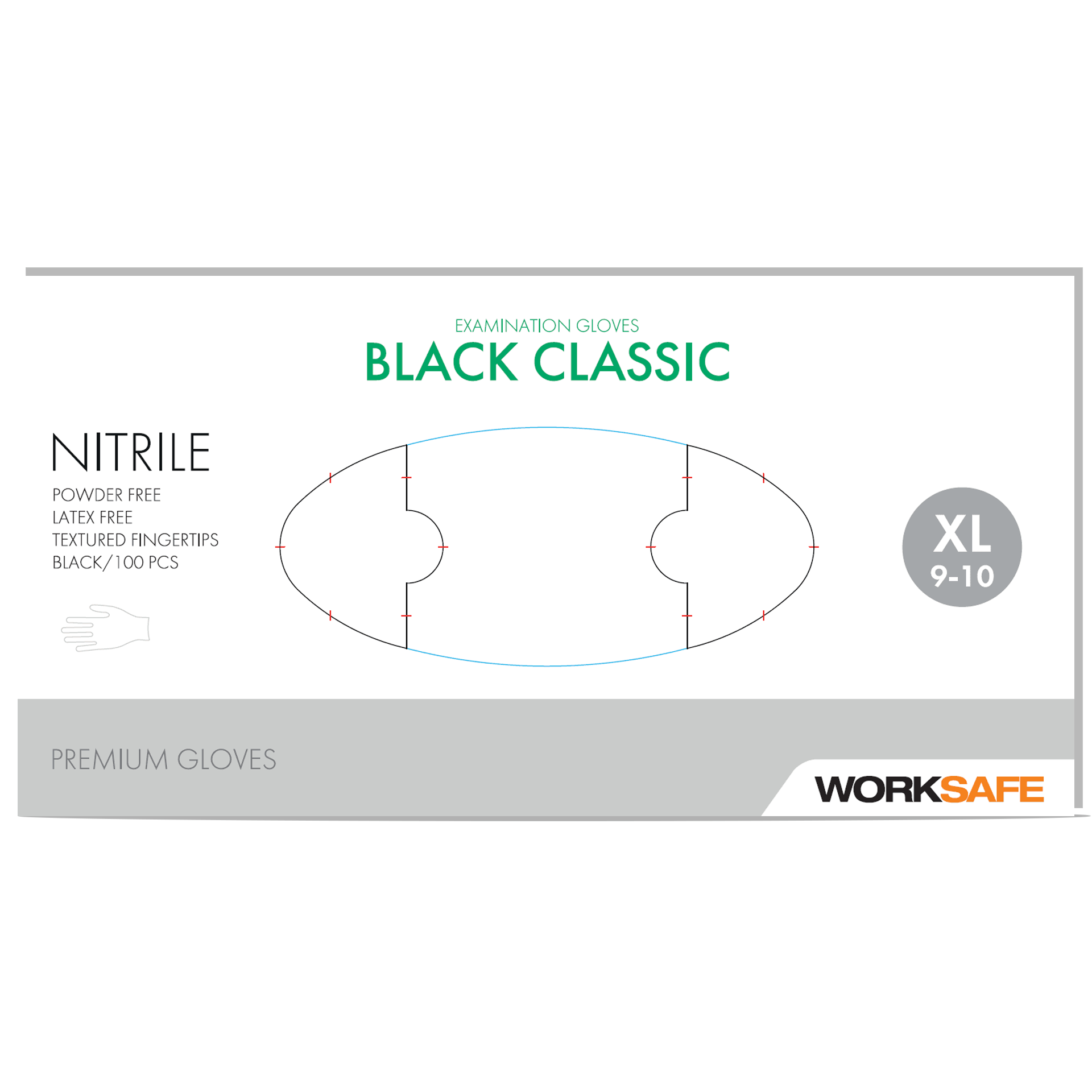 Worksafe engangshanske XL nitril sort 100 pkk